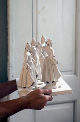 above: original white glazed figurine on left and Gareth Pugh edition on right